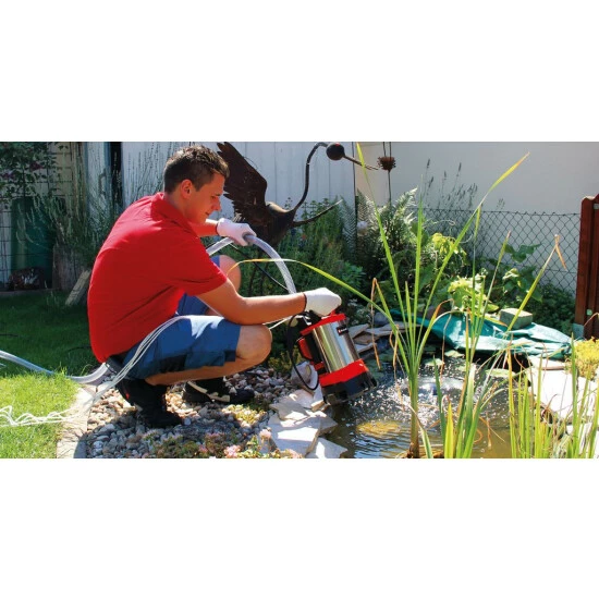 Die Schmutzwasserpumpe GE-DP 7935 N ECO ist ein hochwertiges, äußerst leistungsfähiges und intelligent konzipiertes Gerät der ECO Power Serie. Bei einem breiten Spektrum von Pumpaufgaben rund um Haus, Garten, Teich und Brunnen überzeugt sie mit modernster Technik, satter Leistung und optimaler Energieeffizienz – bei einer Leistungsaufnahme von nur 790 Watt fördert die kraftvolle Pumpe stündlich bis zu 20.000 Liter verunreinigtes Wasser. Die GE-DP 7935 N ECO lässt sich mit einem stufenlos regelbaren Schwimmerschalter auf Dauerbetrieb oder auf einen bestimmten Ein- und Ausschaltpegel einstellen. Sie ist mit einer hochwertigen Gleitringdichtung ausgestattet, die den Motor schützt und für weitgehende Wartungsfreiheit sorgt. Ihr langlebiges Pumpengehäuse besteht aus korrosionsbeständigem Edelstahl und hält höchster Beanspruchung stand. Der gut zugängliche Universalanschluss an der Geräteoberseite bietet vielfältige Anschlussmöglichkeiten. Dank der praktischen Aufhängeösen lässt sich die Pumpe einfach und leicht an die Stelle befördern, an der gepumpt werden soll. Ein Tragegriff sorgt für mühelosen, bequemen Transport, und dank Kabelaufwicklung ist die Pumpe nach dem Einsatz im Handumdrehen ordentlich, sicher und platzsparend verstaut.