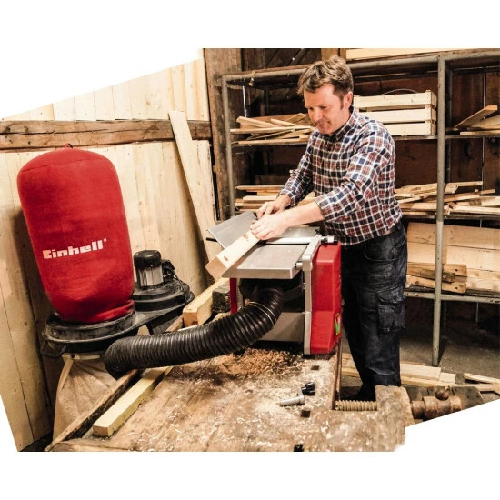 Die stationäre Hobelmaschine TC-SP 204 ist eine hochwertige Maschine für präzises, zügiges Dickenhobeln und Abrichten. Dabei ermöglicht der Dickenhobel mit ausziehbarer Werkstückauflage eine komfortable Handhabung. Für sauberes Arbeiten und einen sauberen Arbeitsplatz sorgt die praktische Spanabsaugung. Die TC-SP 204 ist eine robuste, massive Konstruktion, deren Abrichthobeltisch aus stabilem Aluminium gefertigt und mit einem neigbaren Anschlag zum Fasen versehen ist. Für die nötige Standsicherheit sorgen vibrationsdämpfende Standfüße. Ebenso verfügt die TC-SP 204 über einen Überlastschalter und einen Nullspannungsschalter, der ein unbeabsichtigtes Anlaufen der Maschine nach Stromausfall verhindert.