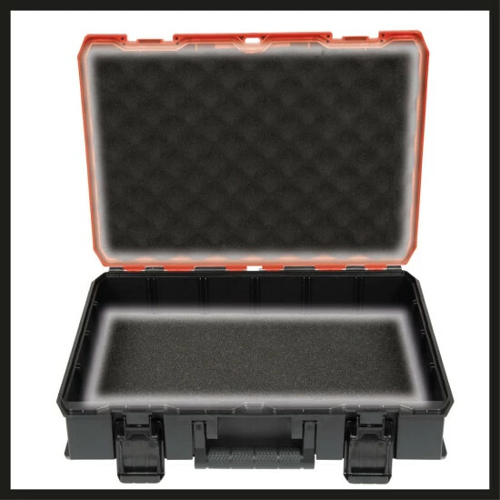 Der Einhell Koffer E-Case S-F sorgt für eine einfache Lagerung und einen komfortablen Transport. Der Systemkoffer ist ideal geeignet für die Aufbewahrung und den Transport von Werkzeugen und Zubehör. Mit dem Innenmaße 420.9 mm x 280.3 mm x 95. Vor Verkratzung des zu lagernden oder transportierenden Equipments sorgen zwei Schaumstoffeinlagen. Ein praktisches Verriegelungssystem für die Verbindung gestapelter Koffer sorgt bei der Lagerung für systematische und sichere Ordnung, einfachen Transport der gestapelter Koffer und durch die durchdachte Bauweise können die Koffer auch im gestapelten Zustand geöffnet werden. Der Koffer ist aus Polypropylen gefertigt und ist damit nicht nur durch das intelligente Design spritzwassergeschützt, sondern durch das hochwertige Material hitzebeständig und schlagresistent. Zwei einklappbare und ergonomische Griffe sorgen für Tragekomfort. Der Koffer kann mit Vorhängeschlössern als Diebstahlsicherung ausgestattet werden.