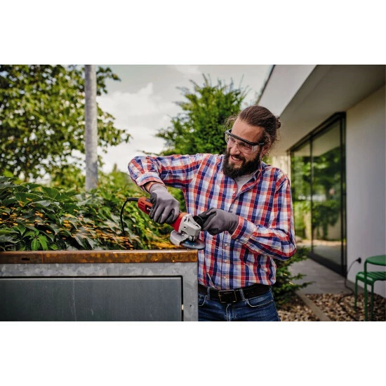 Ob Schleifen, Glätten oder Entrosten, der Einhell Winkelschleifer TC-AG 115/1 ist ein beliebter Allrounder auf der heimischen Baustelle, beim ambitionierten Heimwerker ebenso wie beim Hobby-Handwerker. Kraftvolle 600 Watt Leistung bringen die Trennscheibe dabei auf Touren, auf bis zu 11.000 Umdrehungen pro Minute. Dabei wurde großer Wert auf hohe Anwendersicherheit gelegt durch den speziell konzipierten Scheibenschutz. Auch der Wiederanlaufschutz ist ein wichtiger Aspekt für sicheres Arbeiten. Die Spindelarretierung ermöglicht einen einfachen und komfortablen Werkzeugwechsel. Der Zusatzhandgriff ist in drei unterschiedlichen Positionen montierbar und erweitert so das Anwendungsspektrum und macht den Arbeitseinsatz ergonomisch. Der Scheibendurchmesser beträgt 115 Millimeter. Die gewünschte Trennscheibe ist separat erhältlich.