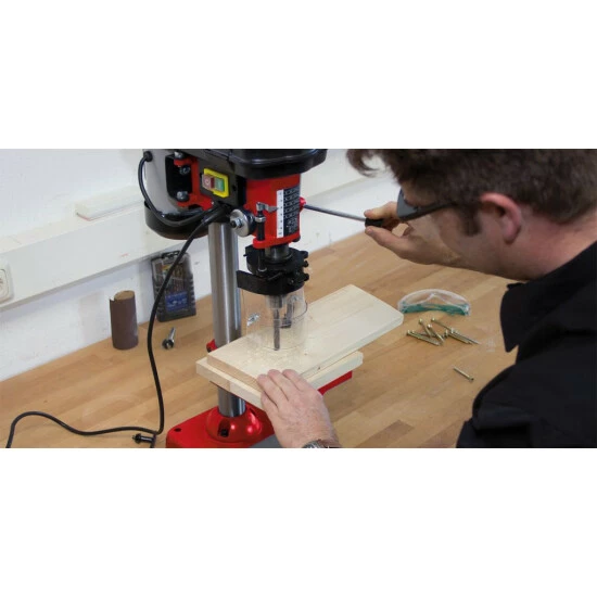 - Die Bohrtischhöhe ist stufenlos und werkzeuglos verstellbar