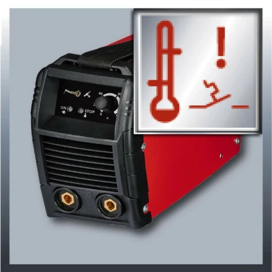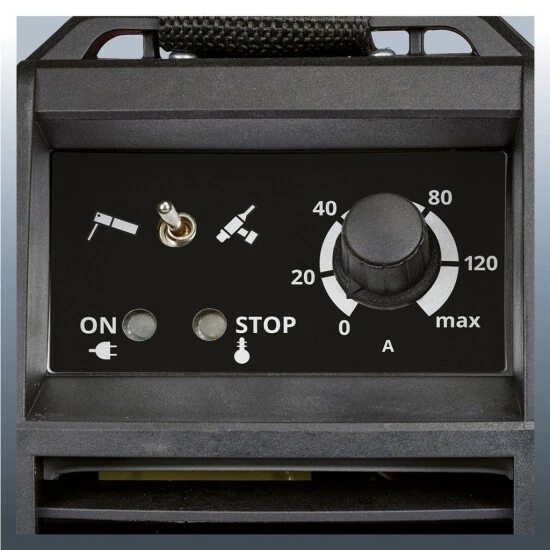 Das Einhell Inverter-Schweißgerät TC-IW 150 ermöglicht sauberes Lichtbogenschweißen bei hoher Leistungsfähigkeit. Der Schweißstrom ist stufenlosregelbar. Auch für längere Einsätze ist das Gerät dank Ventilatorkühlung und Thermowächter mit Kontrollleuchte geeignet. Der Leistungsumfangbeträgt beim Schweißstrom 20 bis 130 Ampere, für das WIG-Schweißen ist ein Leistungsbereich von 30 bis 150 Ampere möglich. DerElektrodendurchmesser beträgt 1,6 bis 3,2 Millimeter. Dank des Umschalters für Elektroden- oder WIG-Schweißen ist das Gerät auch für dasSchutzgasschweißen verwendbar. Es ist mit Masseklemme und Elektrodenhalter mit Schnellkupplung ausgerüstet. Das robuste Stahlblechgehäuse mitTragegurt ermöglicht einen mobilen Einsatz.