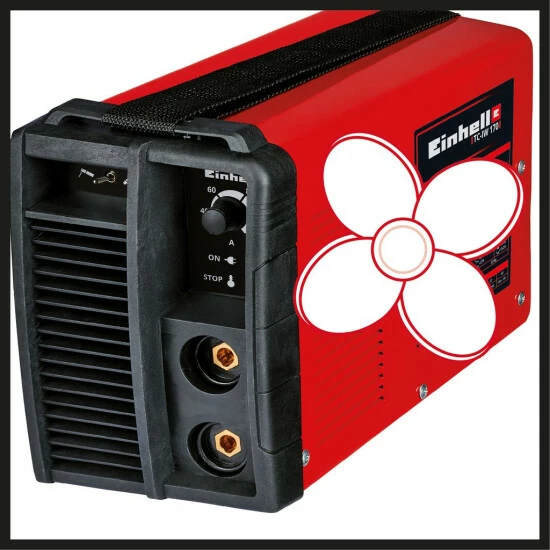 Das Einhell Inverter-Schweißgerät TC-IW 170 ermöglicht exaktes und sauberes Lichtbogenschweißen bei hoher Leistungsfähigkeit. Stufenlos regelbarer Schweißstrom lässt so die Arbeitsweise an jede Situation anpassen. Dabei sind auch längere Arbeitsgänge problemlos möglich: Die Ventilatorkühlung hält das Inverter-Schweißgerät auch bei höherer Belastung einsatzbereit. Der Thermowächter mit Kontrollleuchte schützt das Einhell Inverter-Schweißgerät TC-IW 170 überdies vor Überhitzung. Der Leistungsumfang beträgt beim Schweißstrom 20 bis 150 Ampere, für das WIG-Schweißen ist ein Leistungsbereich von 30 bis 170 Ampere möglich. Der Elektrodendurchmesser beträgt 1,6 bis 4,0 Millimeter. Dank des Umschalters für Elektroden- oder WIG-Schweißen ist das Gerät mit einem separat erhältlichen WIG-Brenner auch für das Schutzgasschweißen verwendbar. Das Inverter-Schweißgerät ist mit einer professionellen Masseklemme und einem professionellen Elektrodenhalter ausgestattet, welche mit Schnellkupplung verbunden werden können. Das robuste Stahlblechgehäuse ermöglicht einen mobilen Einsatz, es ist eigens dafür mit einem Tragegurt ausgestattet.