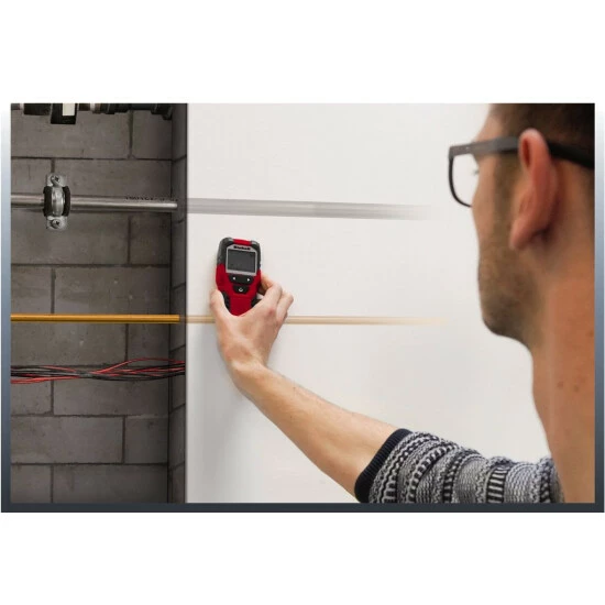 Das Einhell Digitale Ortungsgerät TC-MD 50 ist ein unverzichtbarer Helfer für Heim- und Handwerker: ob im Haus, auf der Baustelle oder bei Sanierungsarbeiten – das digitale Ortungsgerät ist ungeschlagen dabei sichere Ortungen in den Wänden durchzuführen. Dabei spürt das Gerät zuverlässig Metalle, Holz und elektrische Leitungen in Trockenbau auf: Eisenhaltige Metalle wie z.B. Stahl sowie stromführende Leitungen werden bis zu einer Tiefe von 50 Millimeter, nicht-eisenhaltige Metalle wie z.B. Kufper bis zu einer Erfassungstiefe von 38 Millimeter erfasst. Auch Holz wird bis zu einer Tiefe von 19 Millimeter geortet. Dank eines akustischen Warnsignals ist die Bedienung einfach und intuitiv durchzuführen. Durch rückseitig angebrachte Schutzgleiter ist zudem für den Wandschutz gesorgt. Der Softgrip ermöglicht eine komfortable Ein-Hand-Bedienung. Wird das Einhell Digitale Ortungsgerät TC-MD 50 zur Seite gelegt, erfolgt nach einer einminütigen Nutzungsunterbrechung eine automatische Abschaltung.