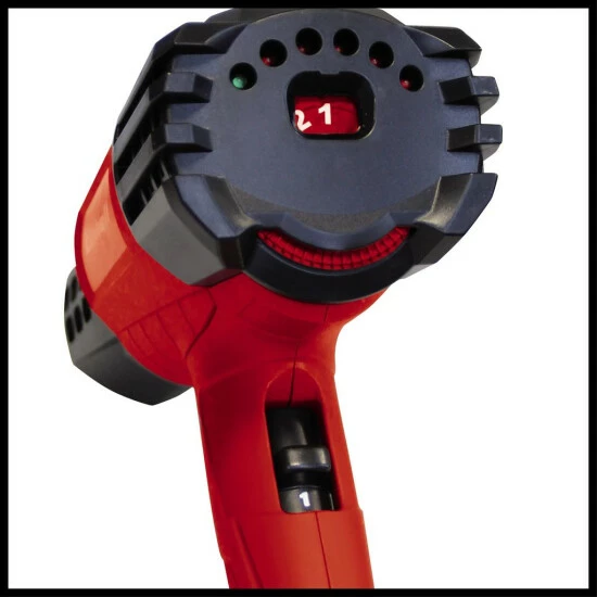 Die Einhell Heißluftpistole TE-HA 2000 E sorgt für die richtige Temperatur, egal ob beim Ablösen alter Lacke und Farben, beim Anpassen von Kunststoffrohren oder beim Aufheizen von Metallen bei Lötarbeiten. Bei vielen Arbeitsschritten ist die Heißluftpistole mit 2.000 Watt Leistung ein bewährter Helfer, ob 50 oder bis zu 550 Grad benötigt werden. Mit dem großen Stellrad lässt sich die Temperatur über neun Stufen einstellen, der dreistufige Schalter steuert dabei die benötigte Luftmenge von 250 bis 500 Liter pro Minute. Die zusätzliche Kaltstufe sorgt für schnelles Abkühlen heißer Metallteile beim Düsenwechsel. Sicher platziert wird die Heißluftpistole dank Abstellfläche für den stationären Einsatz. Für die größtmögliche Flexibilität bei allen Aufgabenstellungen gehören Reduzierdüse, Breitstrahldüse, Reflektordüse und Abstrahldüse zum Lieferumfang.
