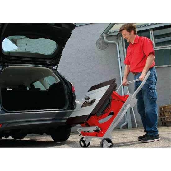 Die Einhell Tischkreissäge TE-TS 250 UF ist eine solide Basis für Präzisionsschnitte beim Kürzen und Zuschneiden von individuellen Werksstücken. Ausgestattet ist sie mit einem Softstart, der sowohl den Motor, als auch die Sicherungen schont. Der Aluminiumhaupttisch ist mit einer absolut exakten Oberfläche für einfache Schnitte ausgestattet. Zusätzlich verfügt die Tischkreissäge über eine pulverbeschichtete Tischverbreiterung und eine durchgehende Anschlagschiene für breite Werkstücke. Der Parallelanschlag ist mit einer Exzenterklemmung ausgestattet. Die Tischkreissäge ist mit einem Hartmetall-Präzisionsblatt ausgerüstet. Ein Schiebestock mit Halterung sorgt für einen sicheren Abstand zum Sägeblatt. Durch die Zwei-in-Einem-Sägeblattverstellung lässt sich die Höhe und die Neigung des Sägeblattes auf die jeweiligen Zuschnittansprüche anpassen. Der transparente Sägeblattschutz sorgt für eine bessere Sicht auf den Schneidevorgang. Das Gehäuse ist mit einem Späneabsauganschluss ausgestattet, wodurch der Arbeitsplatz einfach zu säubern ist. Darüber hinaus verfügt die Tischkreissäge zum bequemen Ablesen der Zahlenskala über eine integrierte Lupe. Die Tischkreissäge ist für den mobilen Gebrauch ausgerüstet und mit einem einfach klappbaren Untergestell ausgestattet. Darüber hinaus ist der Fuß höhenverstellbar, zur Anpassung an unebene Untergründe. Der Zubehörhalter sorgt für einen organisierten Transport. Der Überlastschalter schützt den Motor im Falle einer Überspannung vor Beschädigungen.