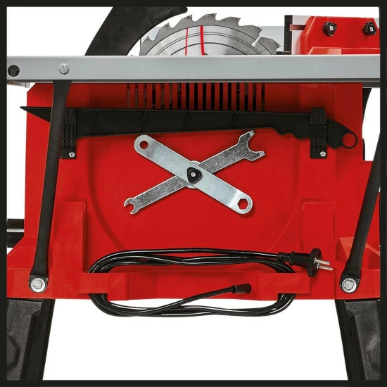 Die Einhell Tischkreissäge TC-TS 254 U ist ein leistungsstarkes Werkzeug, das präzises und flexibles Arbeiten ermöglicht. Der stabile Parallelanschlag ermöglicht exakte Längsschnitte und mit dem Winkelanschlag, oder dem neigbarem Sägeblatt, gelingen Winkelschnitte spielend. Durch die stabilen Seitentische wird die Auflagefläche noch vergrößert. Auch für Größeres ist der leistungsstarke Motor ausgelegt, der mühelos auch für dickere Holzstücke schafft. Das moderne Kunststoffgehäuse ist für bessere Stabilität mit Metallstreben ausgestattet und extra verwindungssteif. Praktische Features sind die Halterungen am Gehäuse, mit denen alle beiliegenden Anschläge und Werkzeuge, der Schiebestock und auch das Stromkabel untergebracht werden können. Das äußerst stabile Untergestell sorgt für eine angenehme Arbeitshöhe in 870 mm.