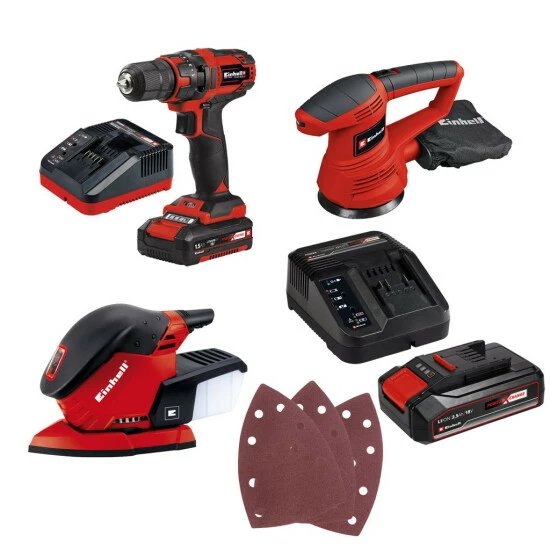 Am billigsten 🎉 Holzbearbeitungsset Mit Akku-Bohrschrauber 18/35 Li Exzenterschleifer, Multischleifer Einhell 🥰