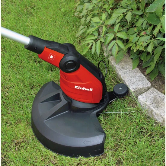 Der Elektro Rasentrimmer GC-ET 4530 ist ein praktisches und sehr leistungsstarkes Gerät, das müheloses Trimmen schwer zugänglicher Gartenbereiche für einen gepflegten Garten ermöglicht. Dank einem um 180° drehbaren und vierfach neigbaren Motorkopf zum bequemen Schneiden an senkrechten Flächen, ist das Gerät vielseitig einsetzbar. GC-ET 4530 verfügt über einen robusten Elektromotor. Sein stufenlos teleskopierbarer Aluminium Führungsholm mit verstellbarem Zusatzhandgriff ermöglicht eine bequeme Zweihandführung und die genaue Anpassung an die Körpergröße für ermüdungsfreies Arbeiten. Gehäuse und Zusatzhandgriff bestehen aus hochwertigem, schlagzähem Kunststoff. Dank des praktischen Kantenrollers lässt sich der Trimmer bequem und präzise an jeder Kante entlangführen. Der Doppelfaden-Schnitt erzielt ein sauberes Schnittbild und wird per vollautomatischer Fadennachführung bequem nachgestellt. Das Zuleitungskabel des Rasentrimmers ist durch eine Zugentlastung vor Verschleiß und Beschädigungen geschützt, die zusätzliche Schutzhaube schützt den Anwender vor aufgewirbelten Kleinteilen, wie Steine oder Holzsplittern. Lieferung inklusive 3 Stück Fadenspulen als praktisches Rasentrimmer Set.