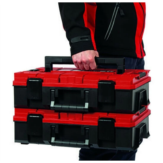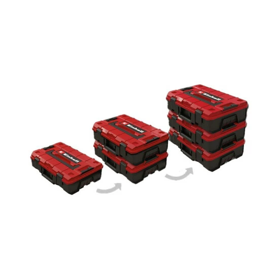 Der Einhell Koffer E-Case S-F sorgt für eine einfache Lagerung und einen komfortablen Transport. Der Systemkoffer ist ideal geeignet für die Aufbewahrung und den Transport von Werkzeugen und Zubehör. Mit dem Innenmaße 420.9 mm x 280.3 mm x 95. Vor Verkratzung des zu lagernden oder transportierenden Equipments sorgen zwei Schaumstoffeinlagen. Ein praktisches Verriegelungssystem für die Verbindung gestapelter Koffer sorgt bei der Lagerung für systematische und sichere Ordnung, einfachen Transport der gestapelter Koffer und durch die durchdachte Bauweise können die Koffer auch im gestapelten Zustand geöffnet werden. Der Koffer ist aus Polypropylen gefertigt und ist damit nicht nur durch das intelligente Design spritzwassergeschützt, sondern durch das hochwertige Material hitzebeständig und schlagresistent. Zwei einklappbare und ergonomische Griffe sorgen für Tragekomfort. Der Koffer kann mit Vorhängeschlössern als Diebstahlsicherung ausgestattet werden.